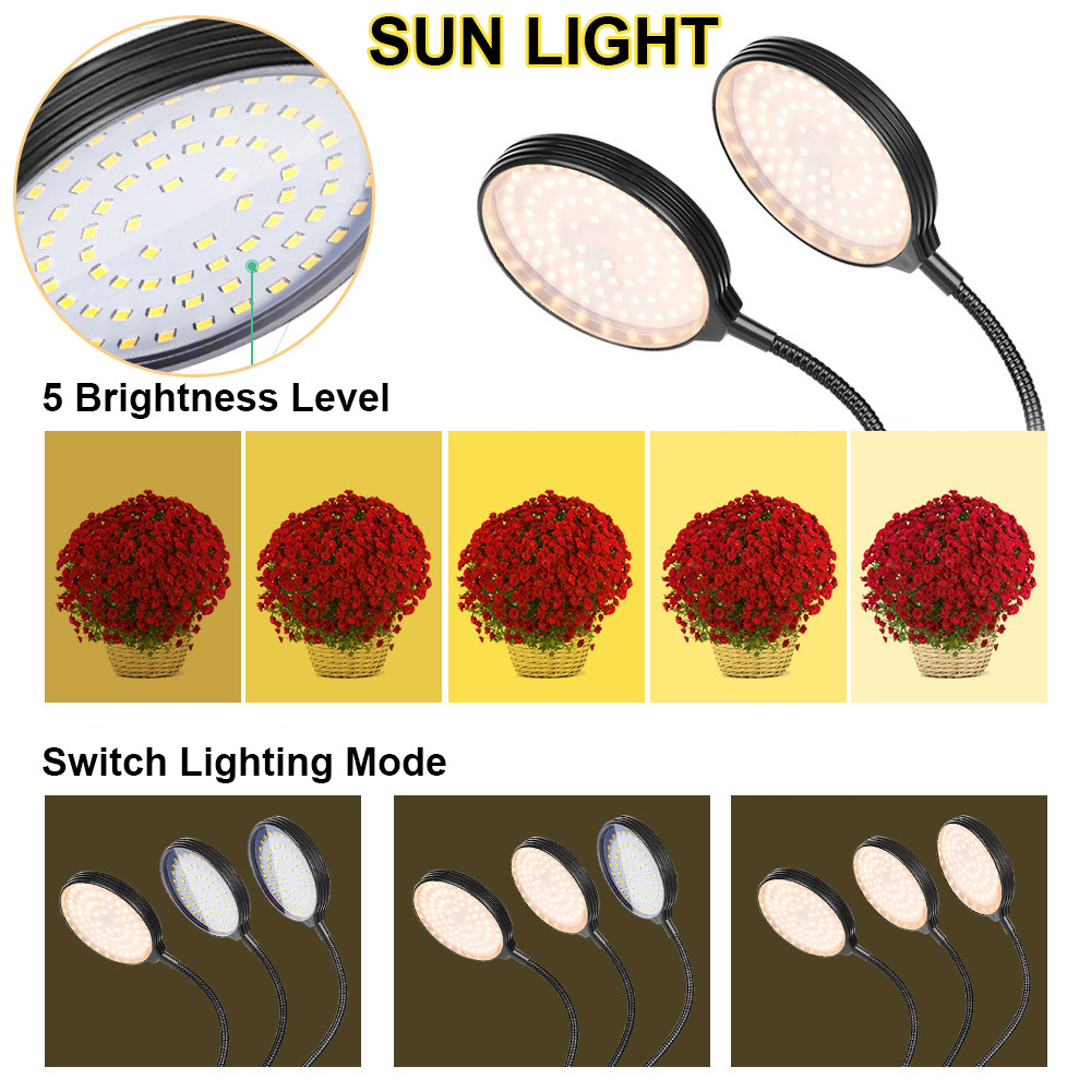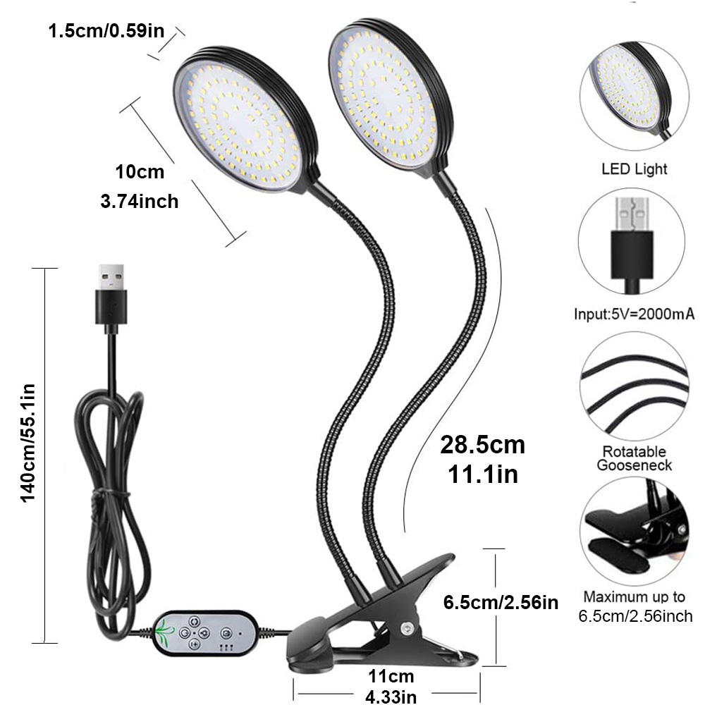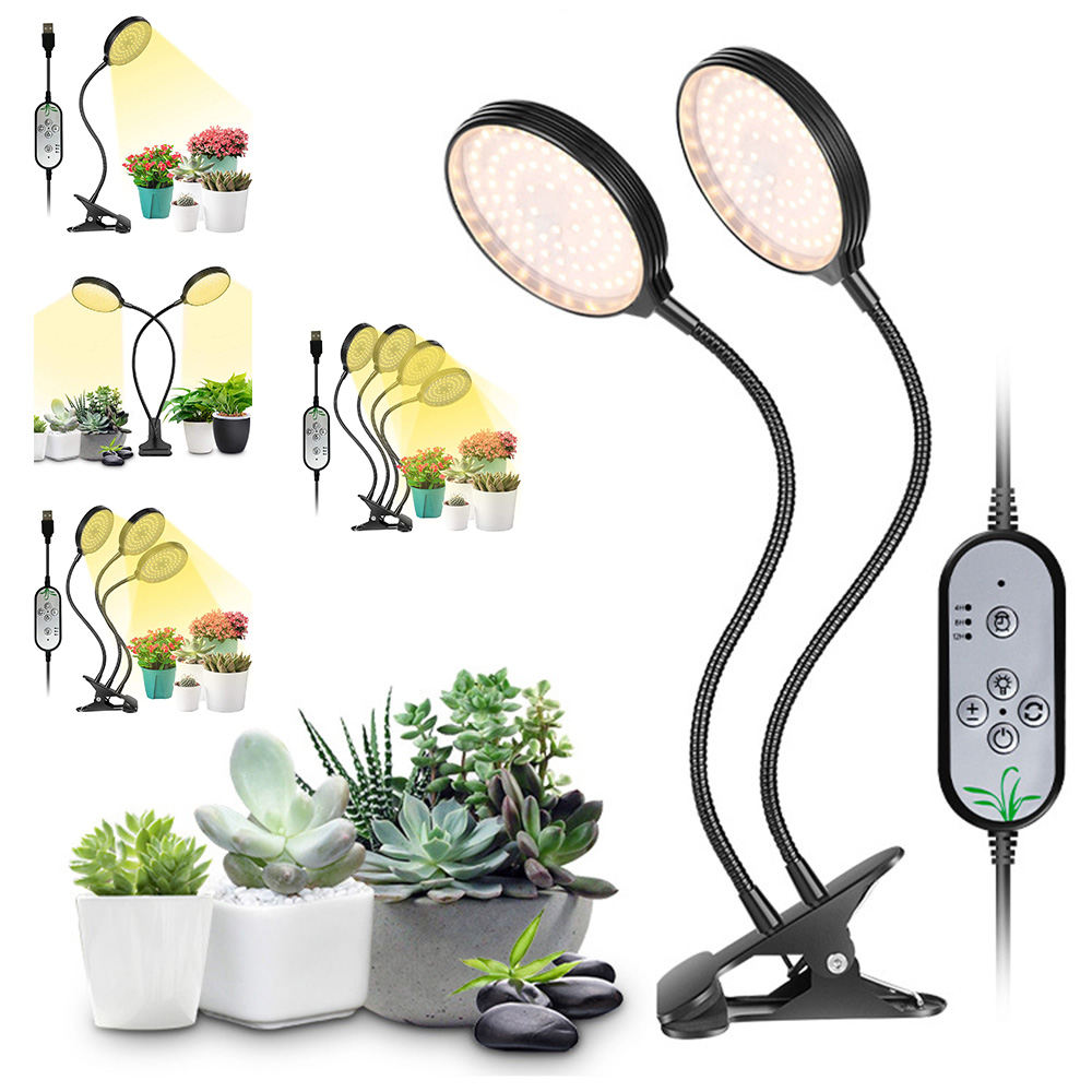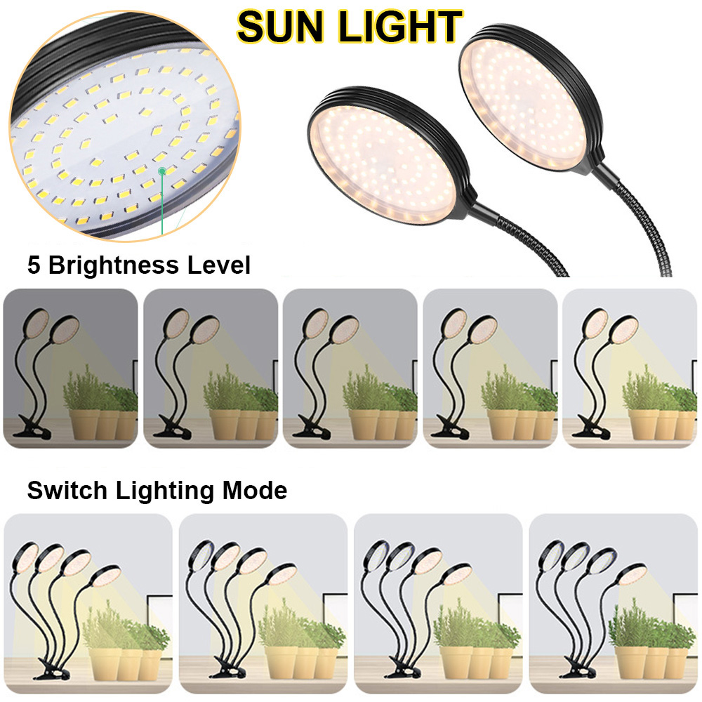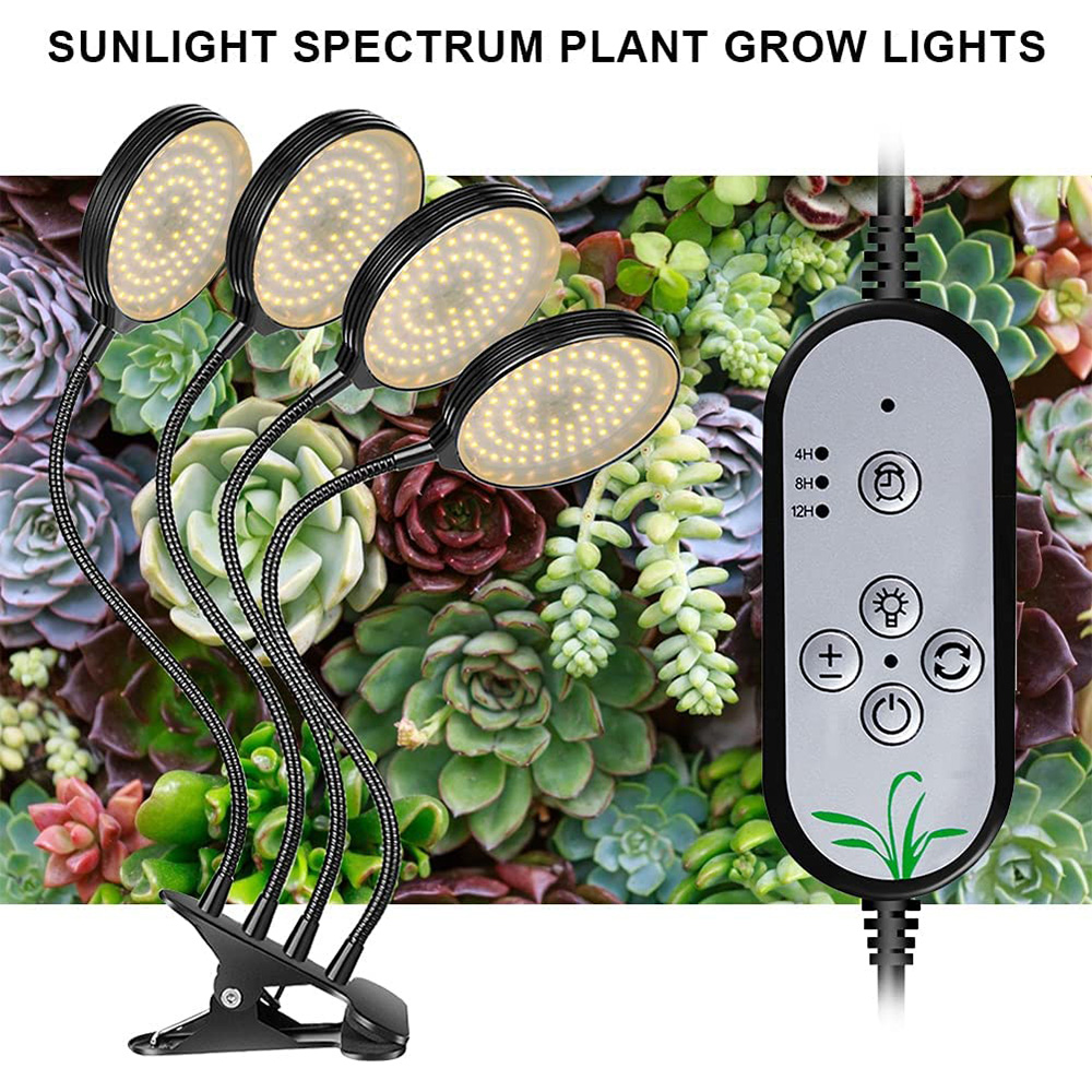 1/2/3/4Heads LED Plant Grow Lights Dimmable Full Spectrum Phyto Lamp with Clip Auto On/Off Timer Indoor Flower Veg Growing Light