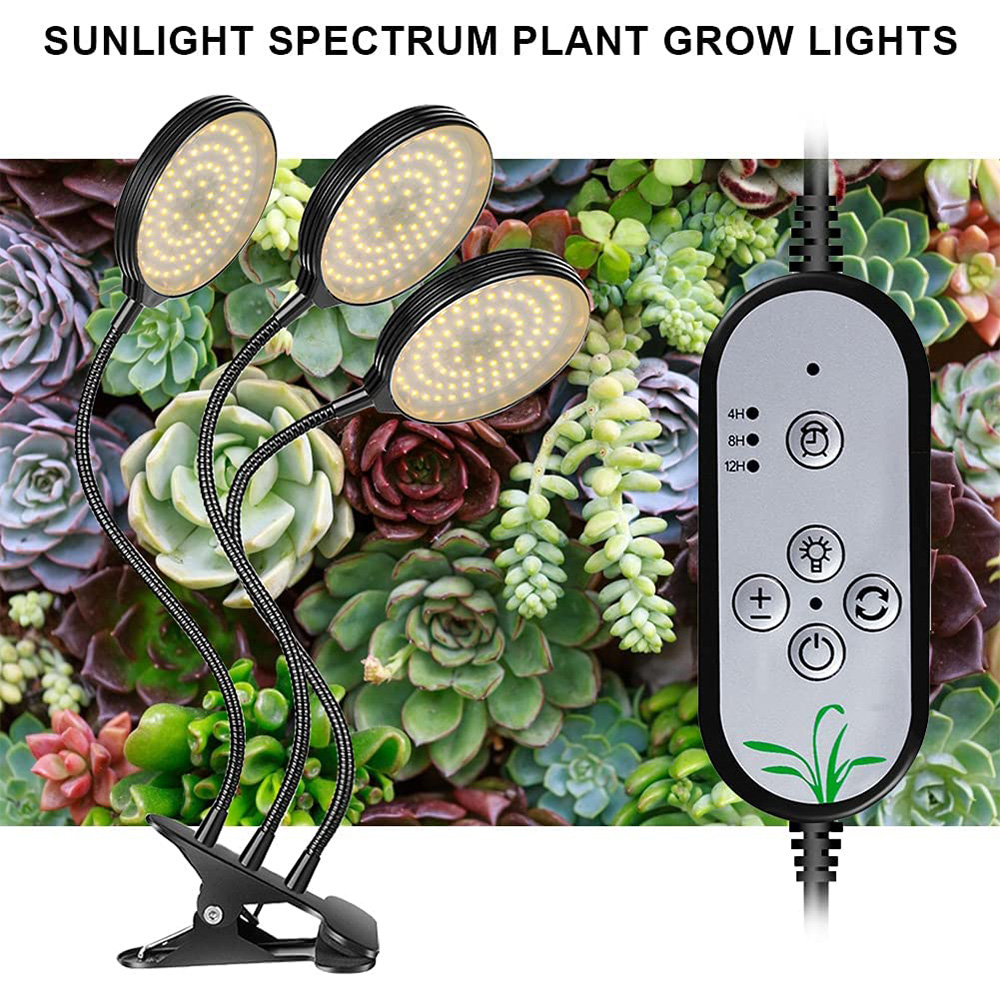 One Clip with 1/2/3/4 Lamp Heads Sunlike Full Spectrum Sunlight LED Plant Grow Lights with Timer Auto On/Off 4/8/12H Dimmable Waterproof Grow Lamp for Indoor Plants