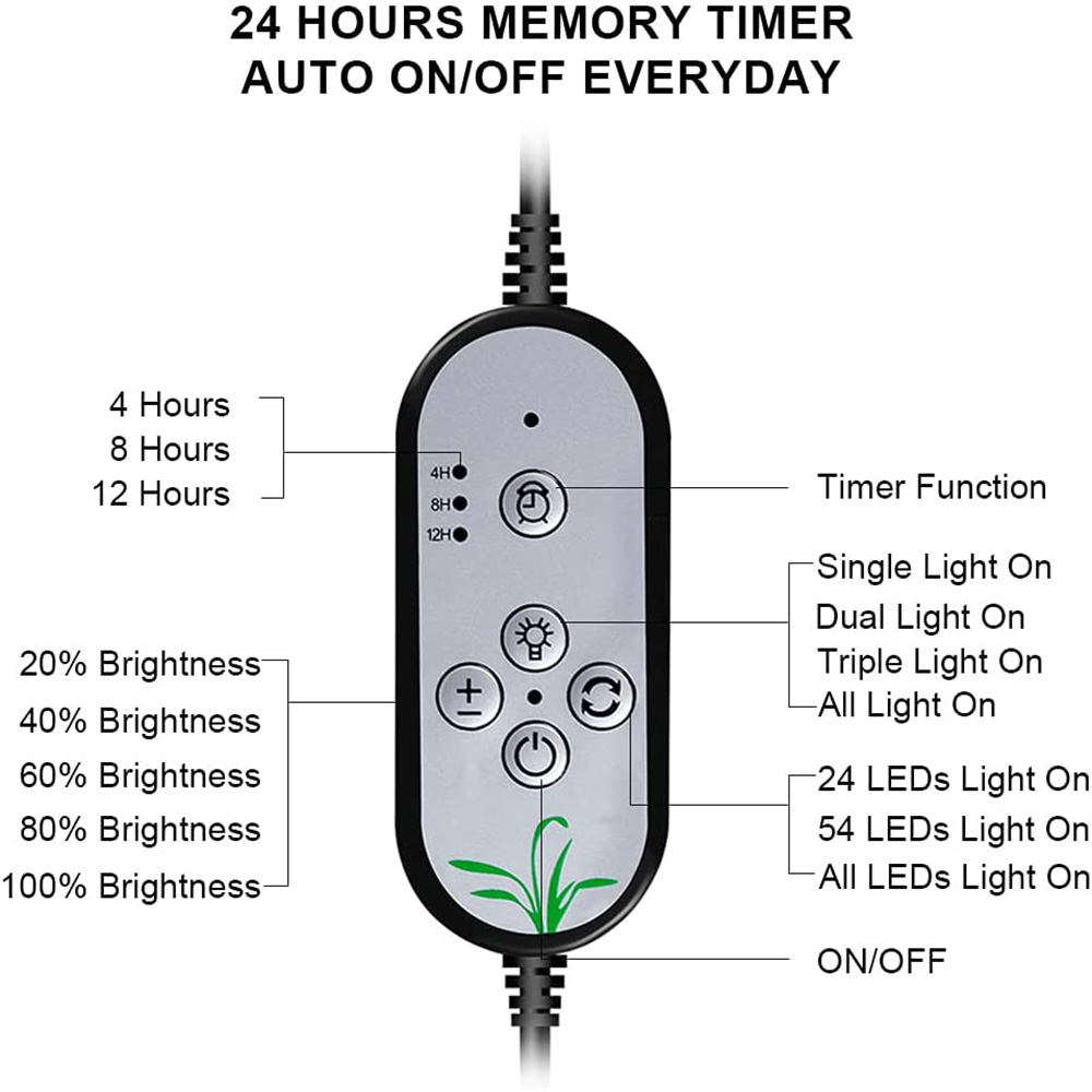 * Auto On/Off Timer: These LED plant lights have three timing function modes: 4/8/12 hours, you can set it up once and it will turn on and off automatically every day.
