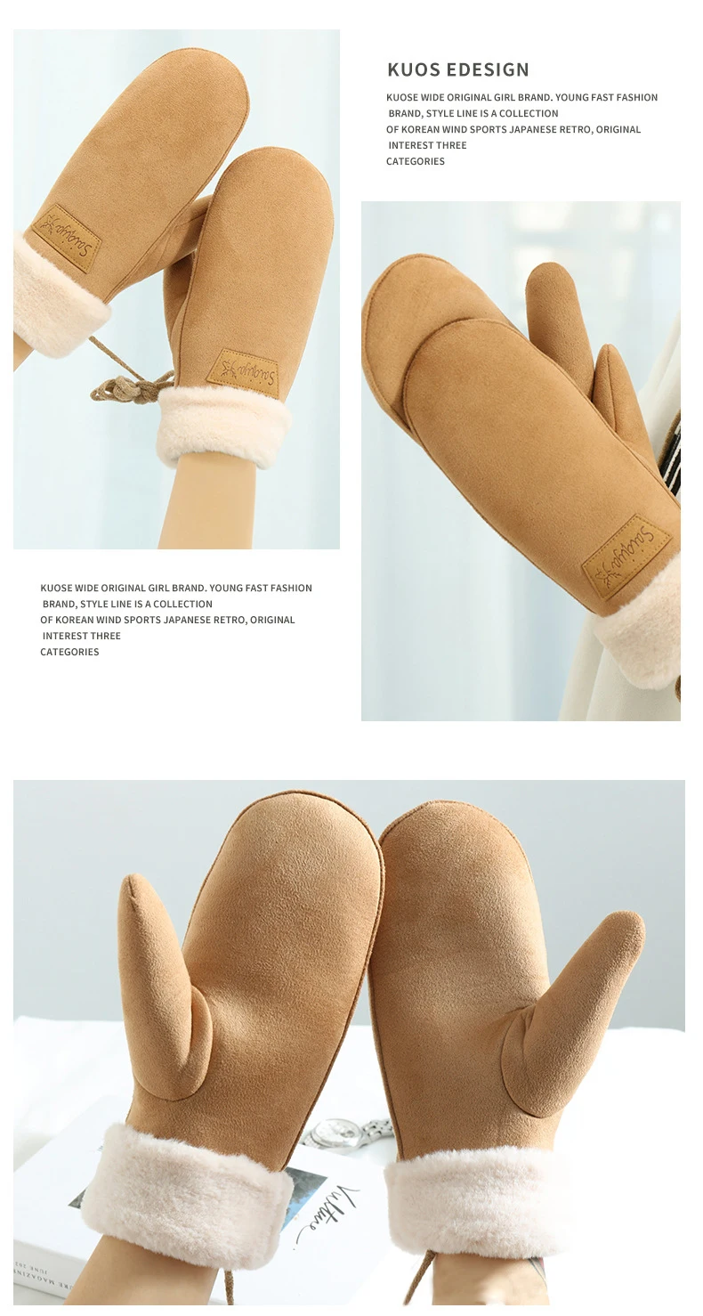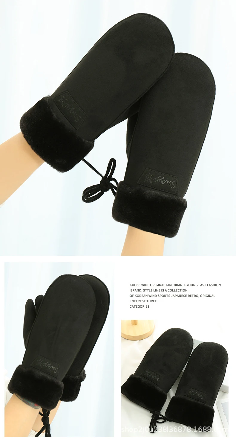 Winter Women Keep Warm Thickened Fleece Suede Halter Gloves Cute Lovely Sweety Cold Protection Mittens
